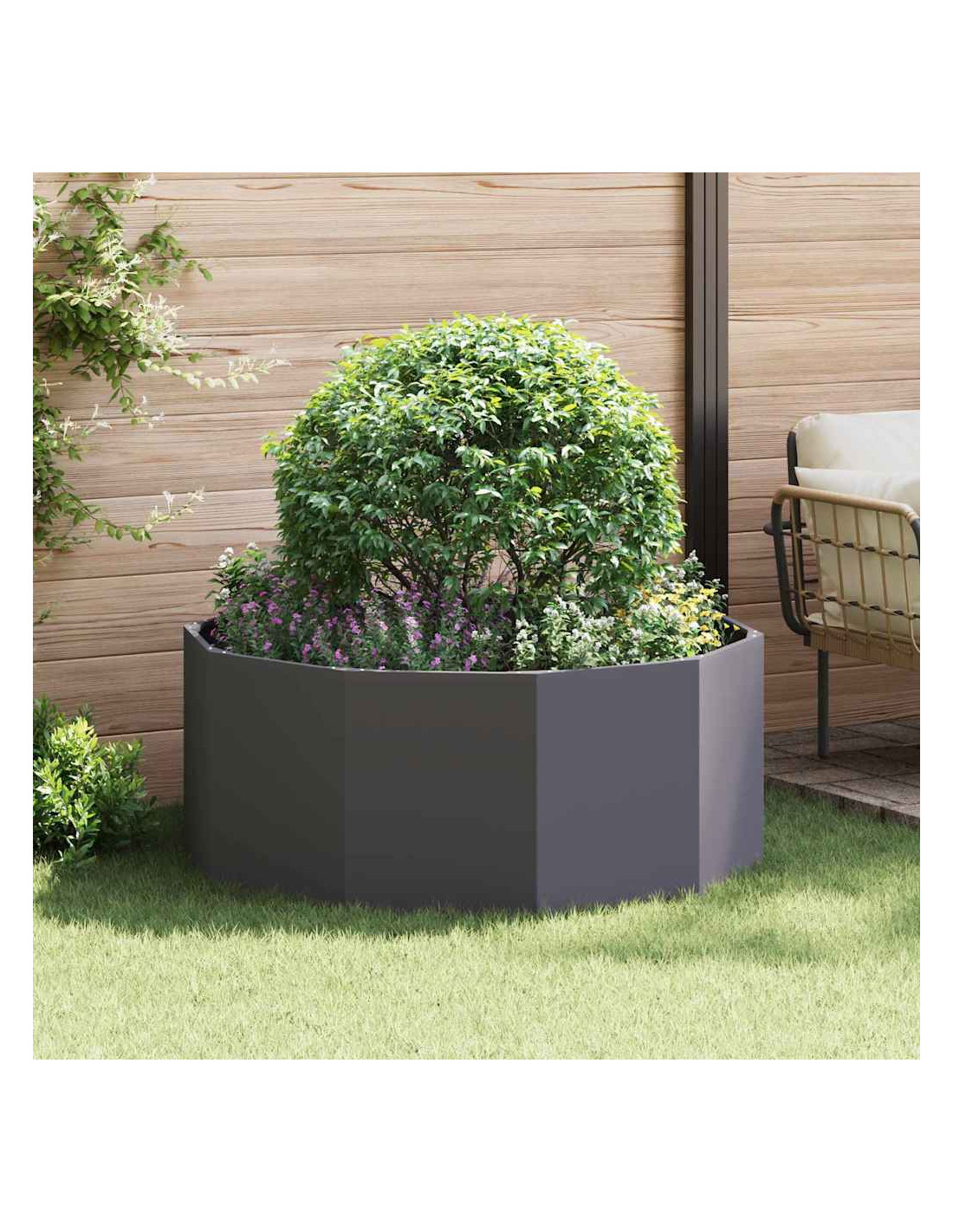 Il vaso da giardino rotondo è progettato per durare e si adatta perfettamente a qualsiasi spazio esterno. È fatto principalmente di acciaio e aggiunge un tocco di eleganza moderna a giardini, patii e terrazze. Il suo aspetto robusto è accompagnato da caratteristiche pratiche, rendendolo ideale per giardini sia urbani che di campagna. È perfetto per esperti e appassionati di giardinaggio, permettendo di coltivare una varietà di fiori e piante.