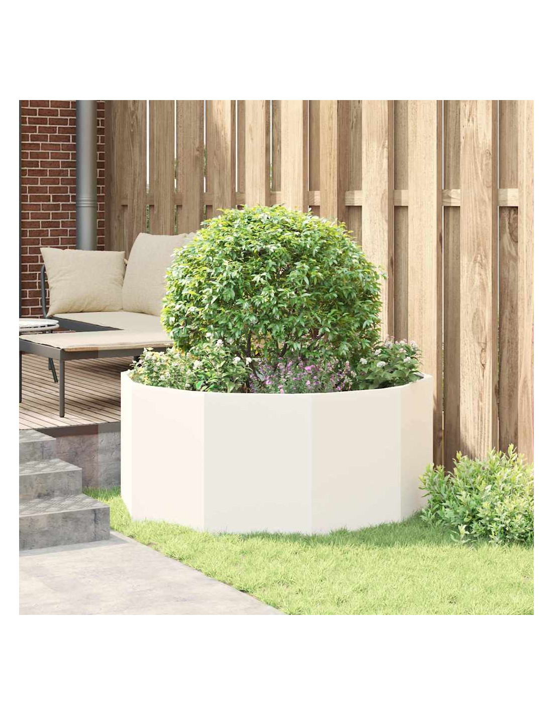 Il vaso da giardino rotondo è progettato per durare e si adatta perfettamente a qualsiasi spazio esterno. È fatto principalmente di acciaio e aggiunge un tocco di eleganza moderna a giardini, patii e terrazze. Il suo aspetto robusto è accompagnato da caratteristiche pratiche, rendendolo ideale per giardini sia urbani che di campagna. È perfetto per esperti e appassionati di giardinaggio, permettendo di coltivare una varietà di fiori e piante.