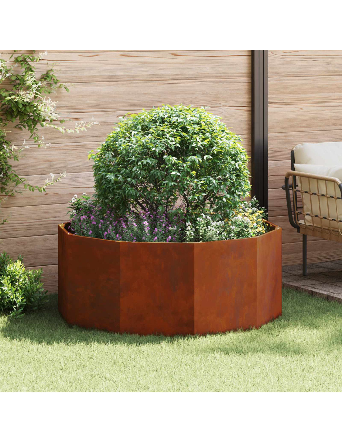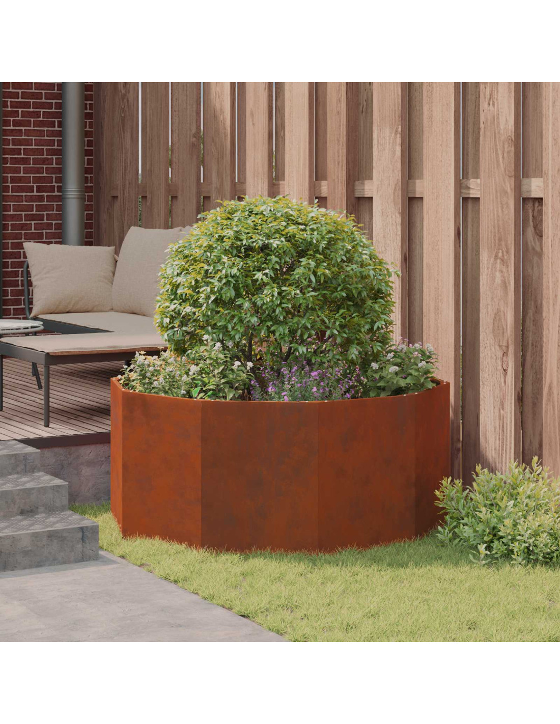 Il vaso da giardino rotondo è progettato per durare e si adatta perfettamente a qualsiasi spazio esterno. È fatto principalmente di acciaio e aggiunge un tocco di eleganza moderna a giardini, patii e terrazze. Il suo aspetto robusto è accompagnato da caratteristiche pratiche, rendendolo ideale per giardini sia urbani che di campagna. È perfetto per esperti e appassionati di giardinaggio, permettendo di coltivare una varietà di fiori e piante.