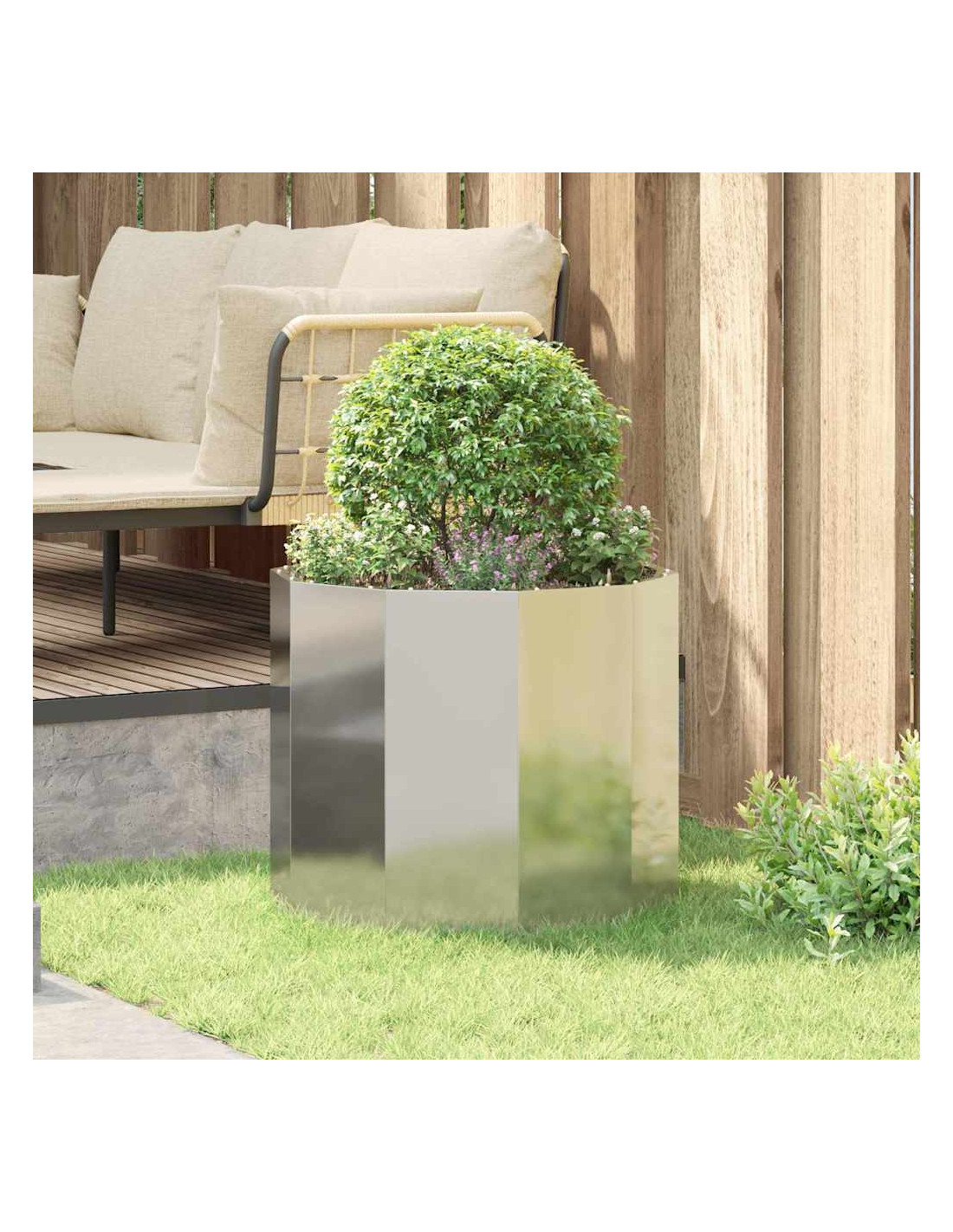 Il vaso da giardino rotondo è progettato per durare e si adatta perfettamente a qualsiasi spazio esterno. È fatto principalmente di acciaio e aggiunge un tocco di eleganza moderna a giardini, patii e terrazze. Il suo aspetto robusto è accompagnato da caratteristiche pratiche, rendendolo ideale per giardini sia urbani che di campagna. È perfetto per esperti e appassionati di giardinaggio, permettendo di coltivare una varietà di fiori e piante.