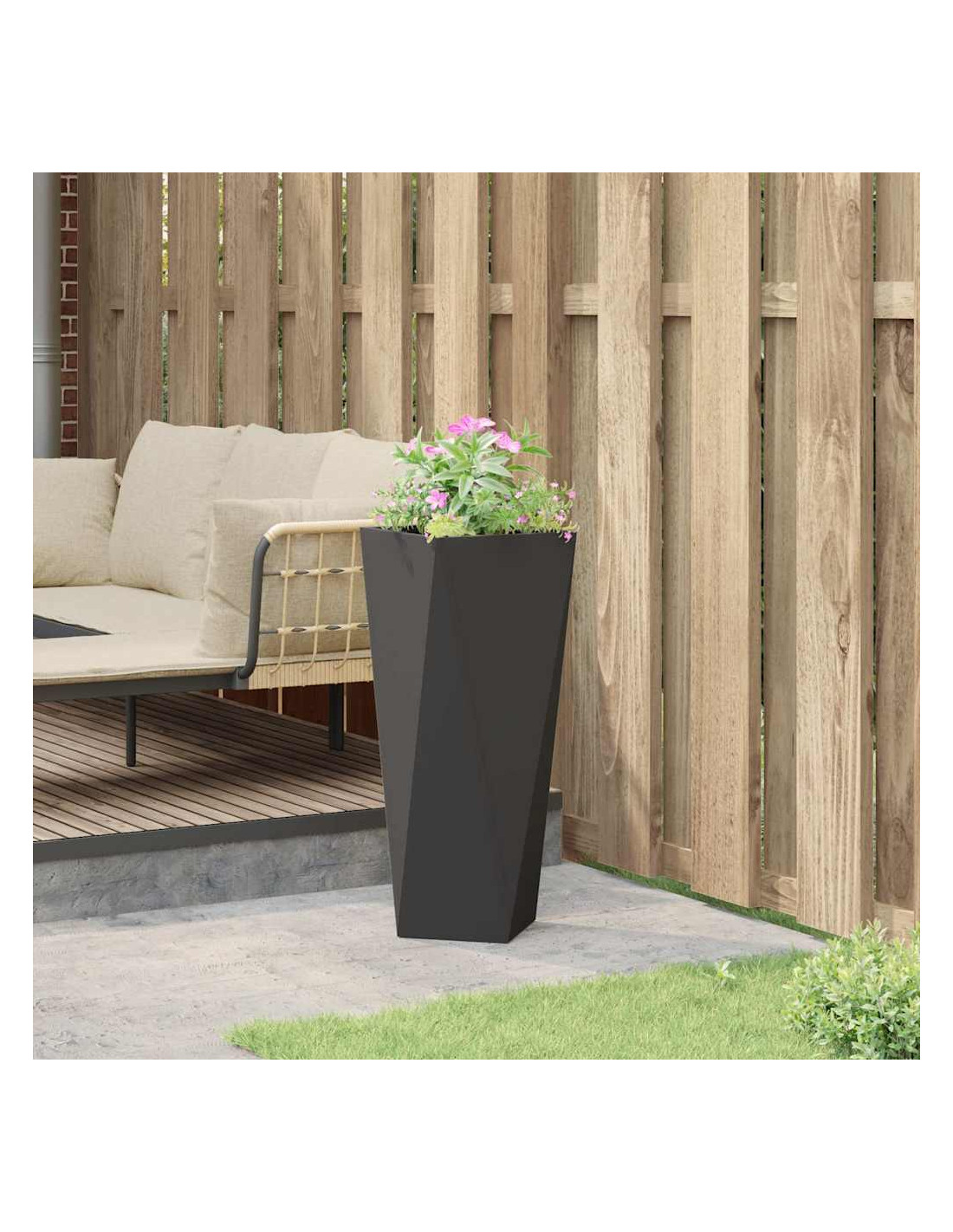 - Manutenzione: Facile da curare, questo vaso richiede poca manutenzione. Basta pulirlo con un panno asciutto per mantenerlo al meglio. Essendo in acciaio, resiste bene ai detriti comuni del giardino, assicurandoti soddisfazione nel tempo.