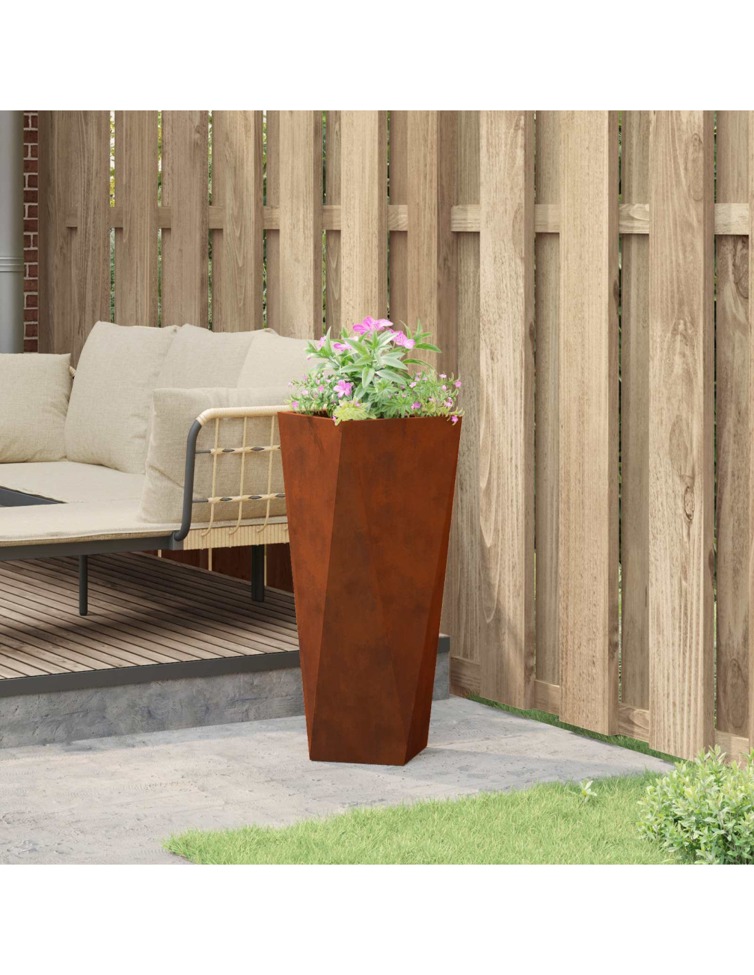 - Manutenzione: Facile da curare, questo vaso richiede poca manutenzione. Basta pulirlo con un panno asciutto per mantenerlo al meglio. Essendo in acciaio, resiste bene ai detriti comuni del giardino, assicurandoti soddisfazione nel tempo.