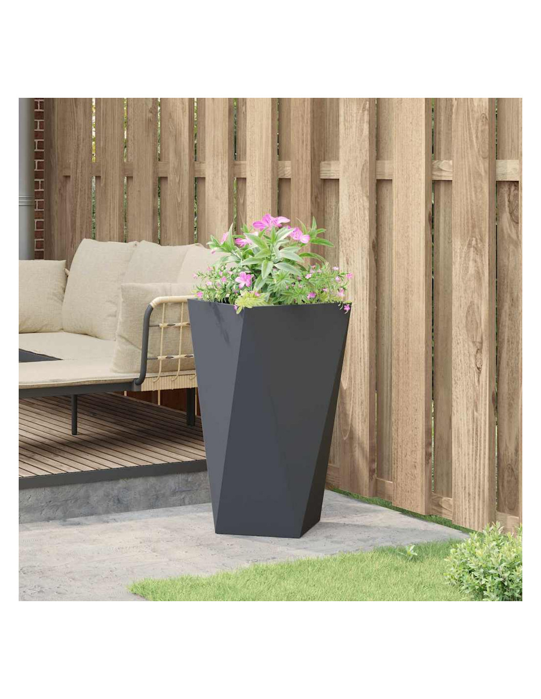 - Manutenzione: Facile da curare, questo vaso richiede poca manutenzione. Basta pulirlo con un panno asciutto per mantenerlo al meglio. Essendo in acciaio, resiste bene ai detriti comuni del giardino, assicurandoti soddisfazione nel tempo.