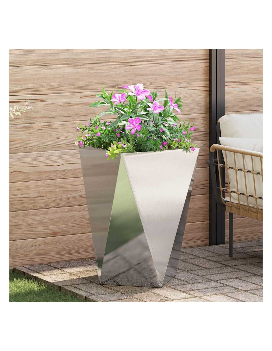 - Manutenzione: Facile da curare, questo vaso richiede poca manutenzione. Basta pulirlo con un panno asciutto per mantenerlo al meglio. Essendo in acciaio, resiste bene ai detriti comuni del giardino, assicurandoti soddisfazione nel tempo.
