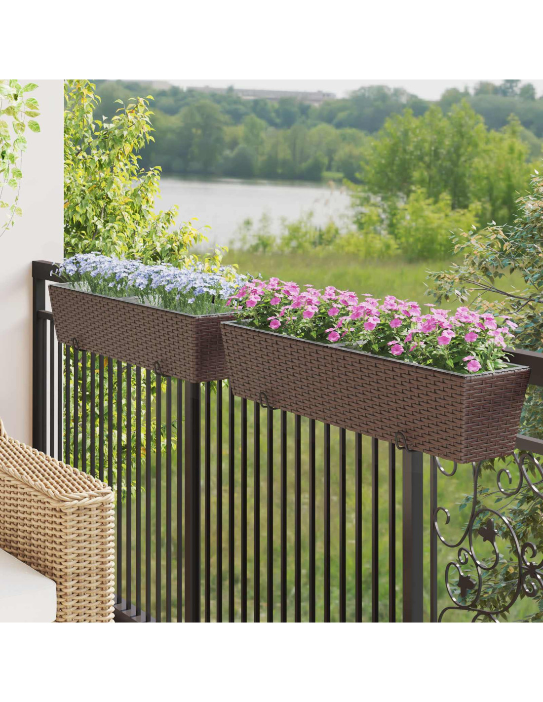 Questa elegante Fioriera per Railing da Balcone, per uso esterno, combina il minimalismo moderno con un look funzionale simile al rattan. La forma trapezoidale e il motivo in rattan naturale la rendono perfetta per decorare qualsiasi balcone o terrazzo.