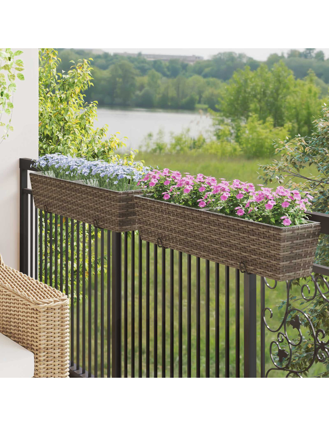 Questa elegante Fioriera per Railing da Balcone, per uso esterno, combina il minimalismo moderno con un look funzionale simile al rattan. La forma trapezoidale e il motivo in rattan naturale la rendono perfetta per decorare qualsiasi balcone o terrazzo.