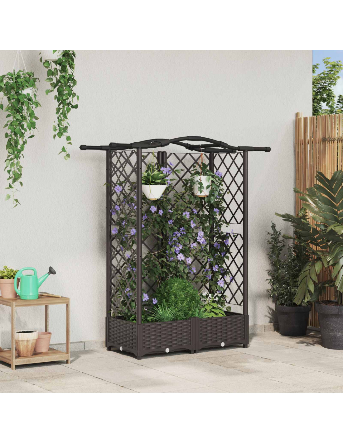 Rinnova il tuo spazio esterno con questo letto da giardino rialzato versatile, con graticcio integrato e tetto sospeso, perfetto per piante rampicanti e layout di giardini verticali. Fabricato in polipropilene resistente e protetto dagli UV, regge il tempo che passa e si adatta a patii, balconi e giardini. Costruzione in polipropilene robusto: Questo letto da giardino è fatto per resistere a sole, pioggia e cambiamenti di temperatura. Resiste agli effetti dei raggi UV e alla sbiaditura, mantenendo la forma e l'aspetto nel tempo. Graticcio e tetto integrati: Presenta un graticcio robusto per piante rampicanti e un telaio superiore per vasi o ceste sospese. Fai crescere le viti in verticale e sospendi fiori o erbe in alto, creando un bellissimo giardino a mais livelli senza occupare spazio a terra. Sistema di drenaggio intelligente: Ha un foro di drenaggio e un tappo removibile per rilasciare acqua in eccesso. Questo vaso include un interno per l'acqua che crea una riserva temporanea, aiutando a mantenere l'umidità costante senza necessità di rivestimenti. Facile da montare: Progettato per il comfort dell'utente, questo articolo viene con istruzioni chiare e parti ben allineate, facendo del montaggio un gioco da ragazzi e garantendo una struttura stabile e sicura. Facile da pulire e mantenere: Fatto in polipropilene facile da igienizzare, richiede poca manutenzione. Basta passare un panno asciutto o umido! Ogni tanto, per un drenaggio corretto, rimuovi e sostituisci il tappo per mantenere il rendimento ottimale dell’acqua.