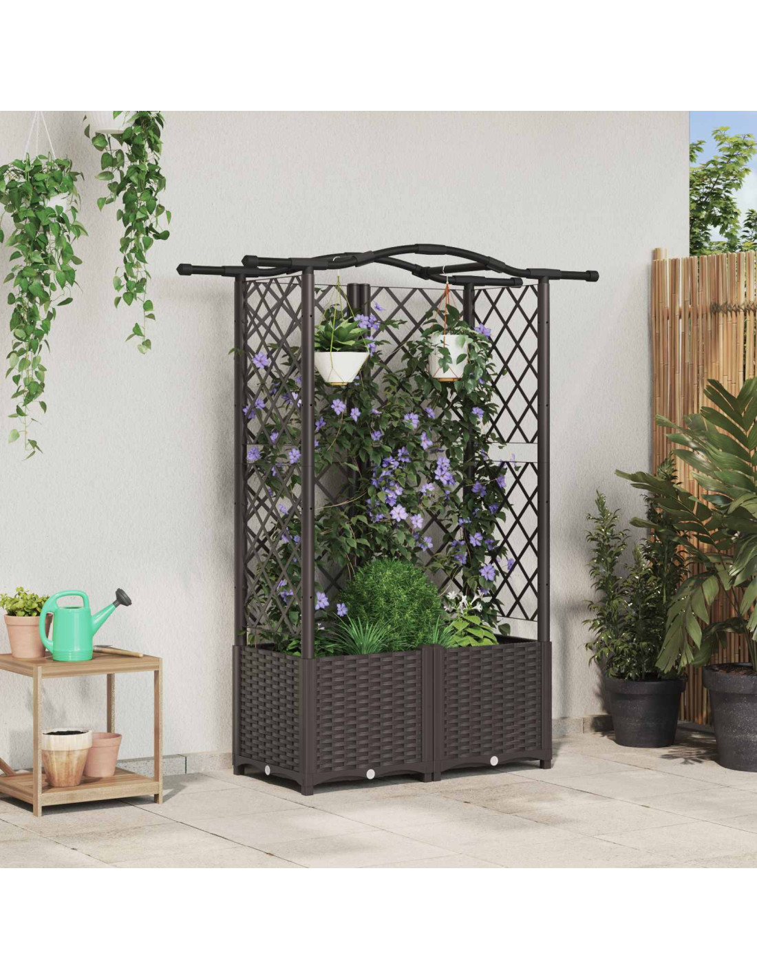 Rinnova il tuo spazio esterno con questo letto da giardino rialzato versatile, con graticcio integrato e tetto sospeso, perfetto per piante rampicanti e layout di giardini verticali. Fabricato in polipropilene resistente e protetto dagli UV, regge il tempo che passa e si adatta a patii, balconi e giardini. Costruzione in polipropilene robusto: Questo letto da giardino è fatto per resistere a sole, pioggia e cambiamenti di temperatura. Resiste agli effetti dei raggi UV e alla sbiaditura, mantenendo la forma e l'aspetto nel tempo. Graticcio e tetto integrati: Presenta un graticcio robusto per piante rampicanti e un telaio superiore per vasi o ceste sospese. Fai crescere le viti in verticale e sospendi fiori o erbe in alto, creando un bellissimo giardino a mais livelli senza occupare spazio a terra. Sistema di drenaggio intelligente: Ha un foro di drenaggio e un tappo removibile per rilasciare acqua in eccesso. Questo vaso include un interno per l'acqua che crea una riserva temporanea, aiutando a mantenere l'umidità costante senza necessità di rivestimenti. Facile da montare: Progettato per il comfort dell'utente, questo articolo viene con istruzioni chiare e parti ben allineate, facendo del montaggio un gioco da ragazzi e garantendo una struttura stabile e sicura. Facile da pulire e mantenere: Fatto in polipropilene facile da igienizzare, richiede poca manutenzione. Basta passare un panno asciutto o umido! Ogni tanto, per un drenaggio corretto, rimuovi e sostituisci il tappo per mantenere il rendimento ottimale dell’acqua.
