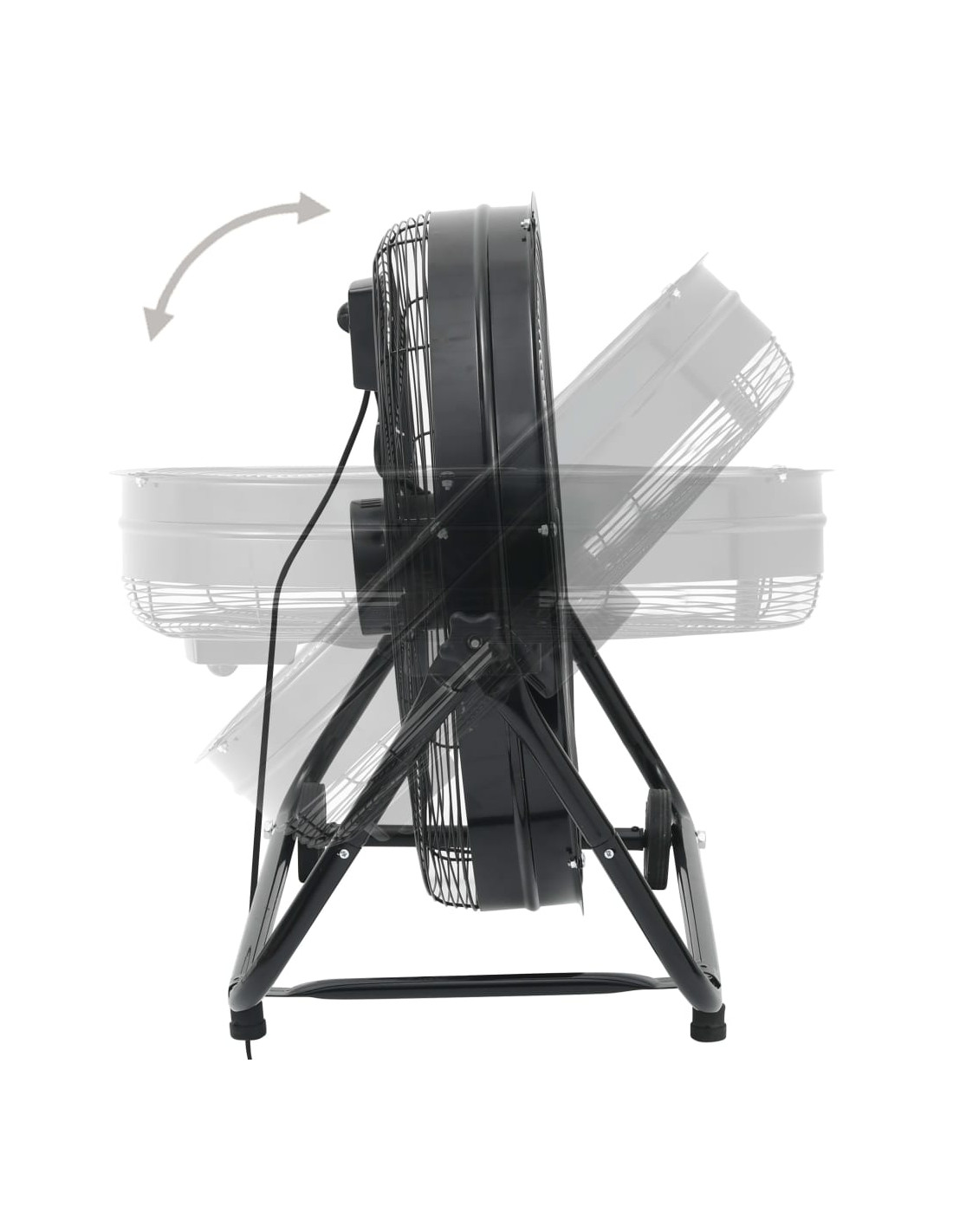 Le pale del ventilatore sono in alluminio. Il supporto stabile e la griglia in acciaio con verniciatura a polvere garantiscono un funzionamento sicuro. Il ventilatore è dotato di interruttori rotanti che consentono di cambiare facilmente la velocità. Grazie ai tre livelli di velocità è possibile generare la quantità perfetta di aria fresca per l'ambiente in cui ci si trova. Con 172,5 watt, il ventilatore da pavimento dispone di riserve di potenza superiori per garantire un raffreddamento adeguato anche con temperature elevate. L'angolo di inclinazione di 80 gradi consente di dirigere il flusso d'aria tra il pavimento e il soffitto. Le gambe antiscivolo con rotelle assicurano un facile spostamento.