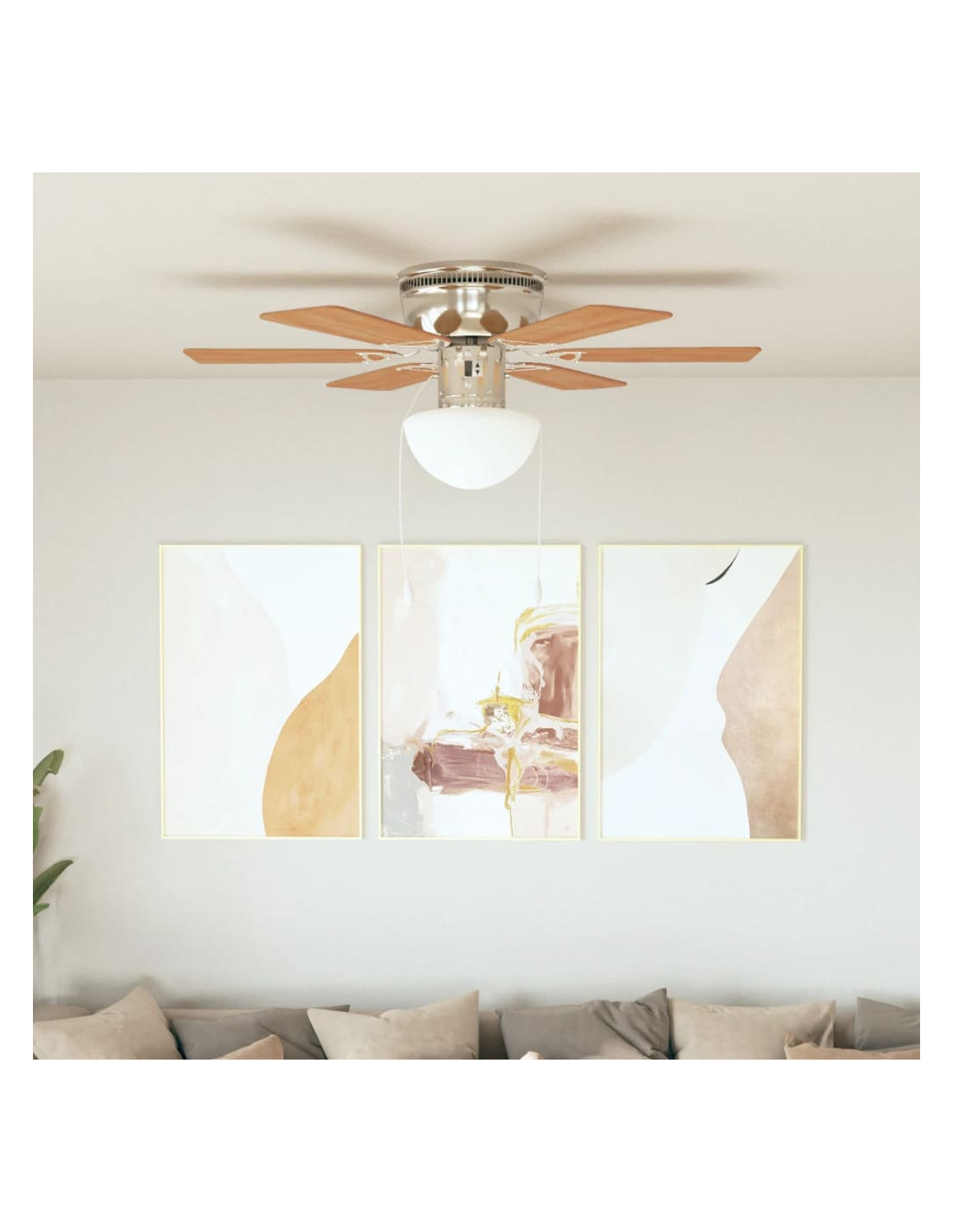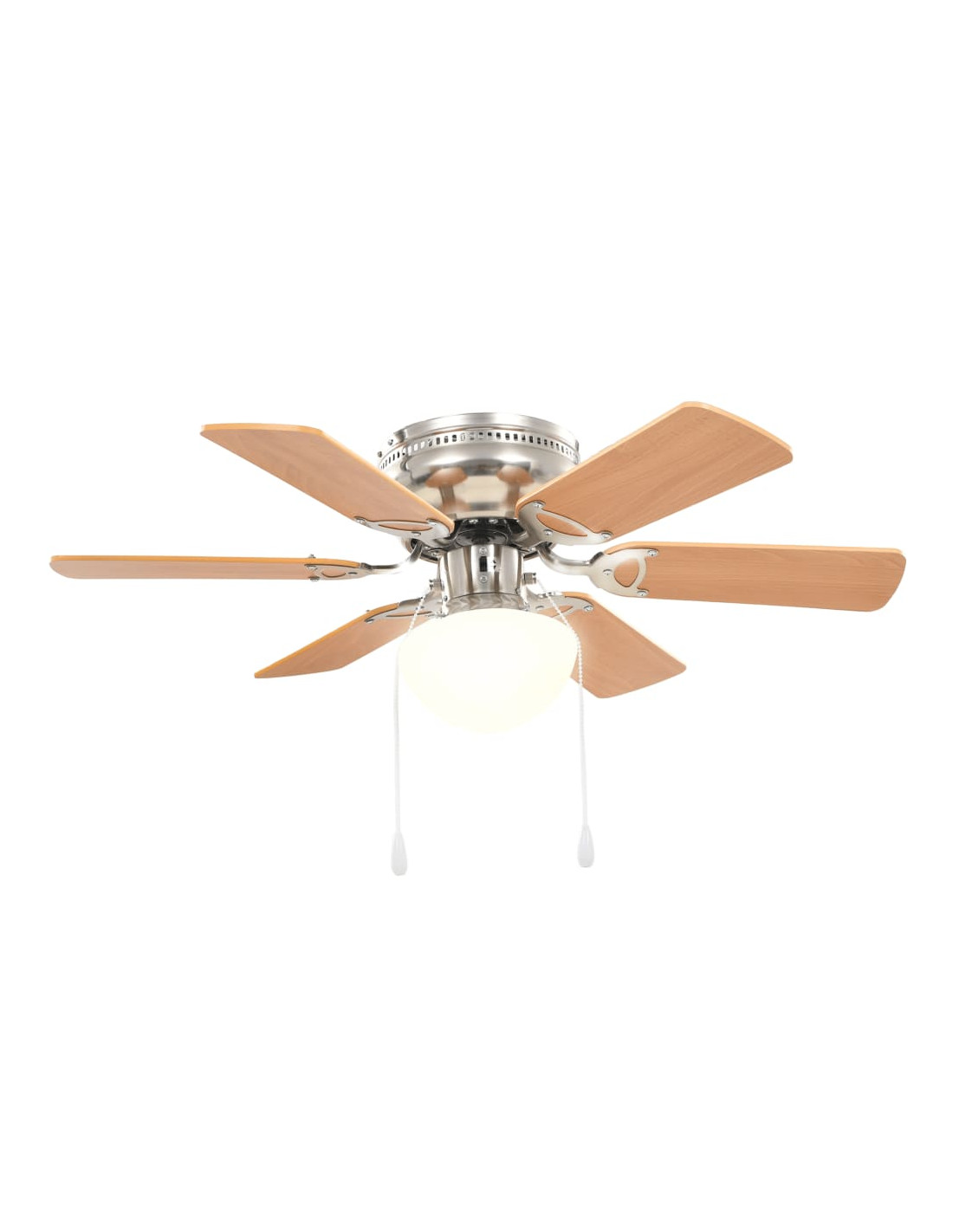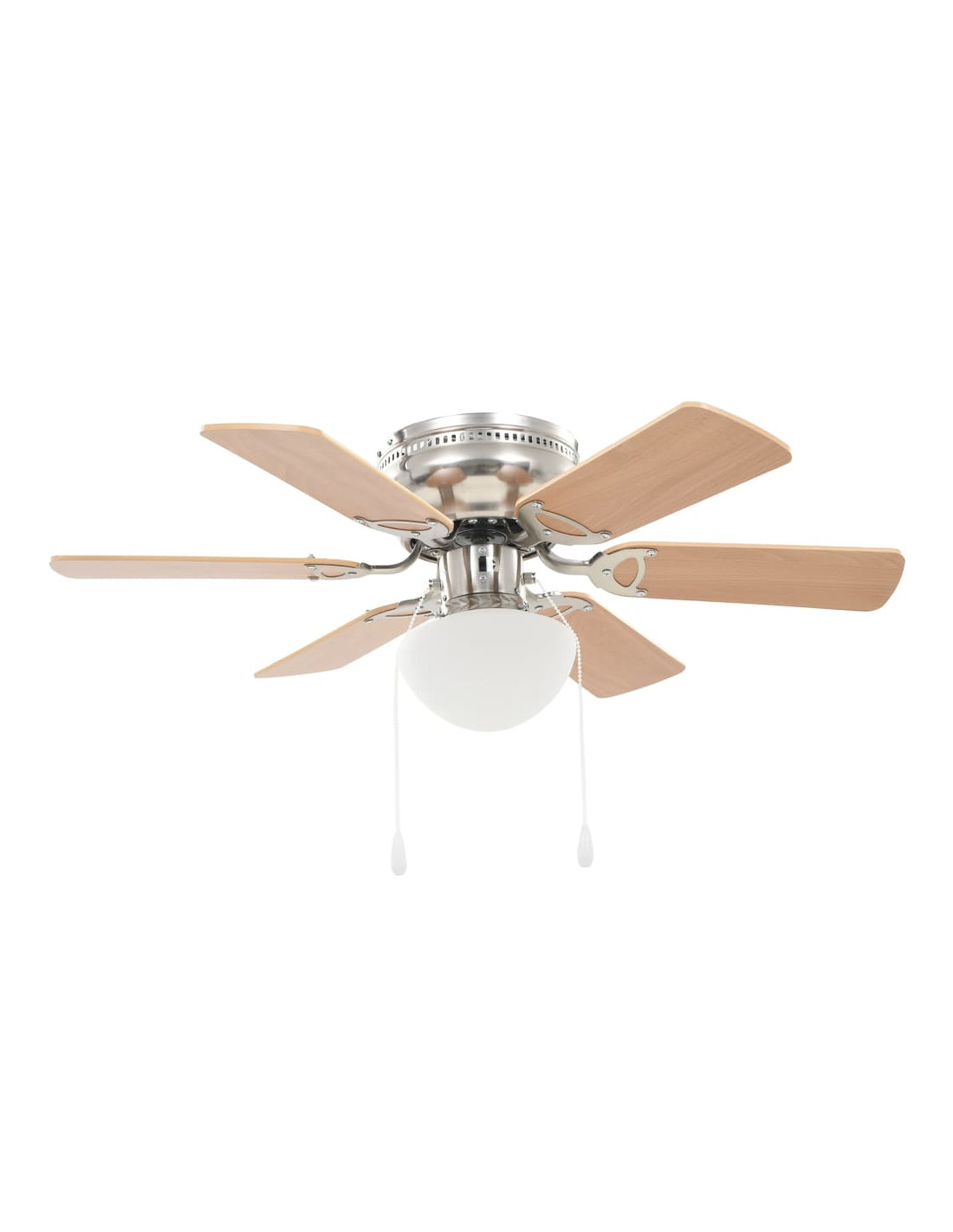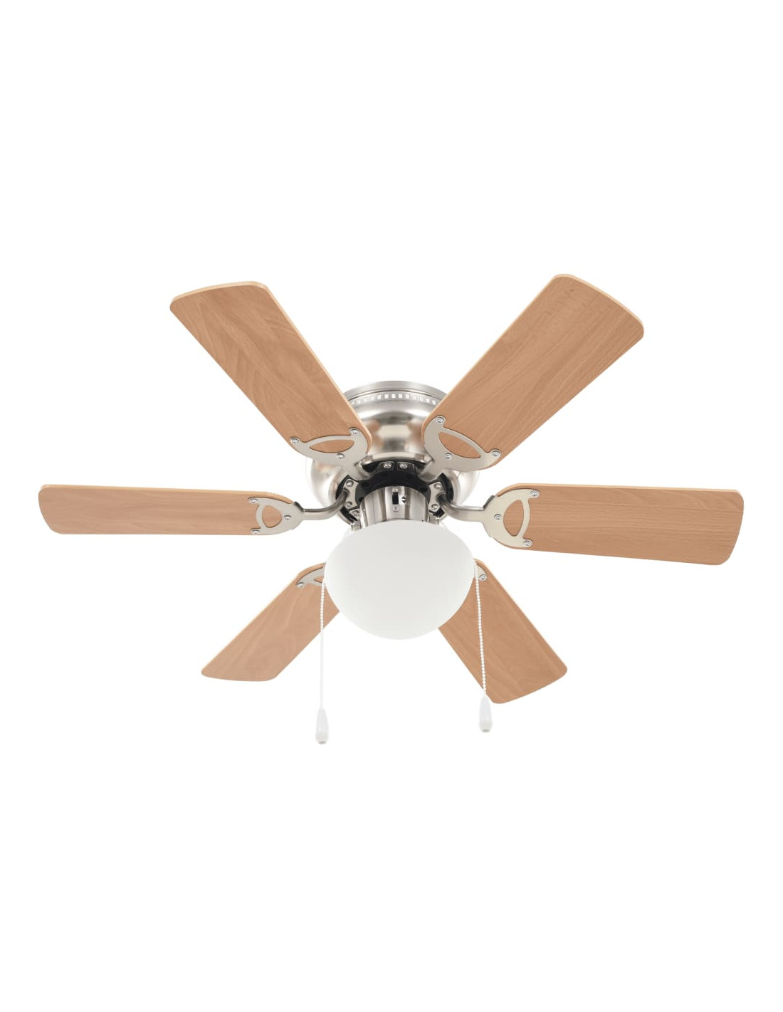 Questo ampio ventilatore da soffitto ha un diametro totale di 82 cm e assicurerà una perfetta circolazione dell'aria nella vostra stanza. La ventola può essere controllata tirando il cordoncino. La sua velocità può essere regolata a 3 diversi livelli. Grazie alla lampada integrata, la ventola del soffitto illuminerà la stanza e contribuirà a creare un'atmosfera piacevole nel vostro spazio abitativo. Facile da assemblare.