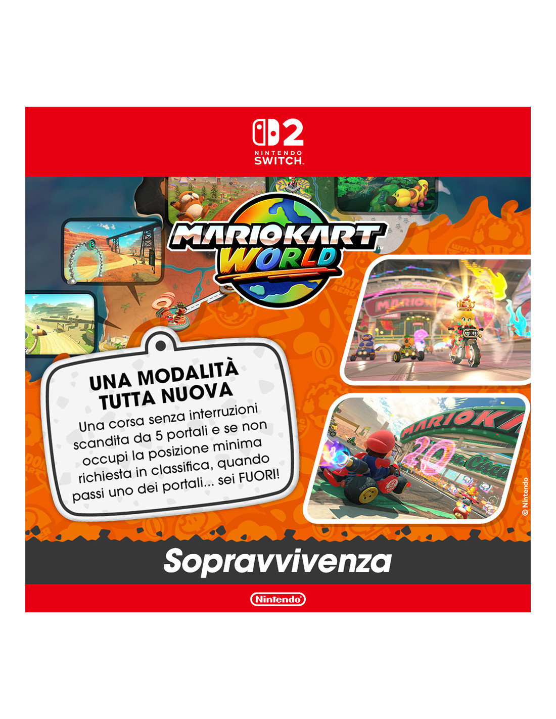 Guida senza limiti con Mario e i suoi amici! Sfreccia tra i percorsi di un vasto mondo dove ogni luogo è collegato. Gareggia tra verdi pianure, vivaci città, vasti specchi d’acqua, vulcani antichi e... tutto quello che c’è in mezzo! In esclusiva per Nintendo Switch 2!