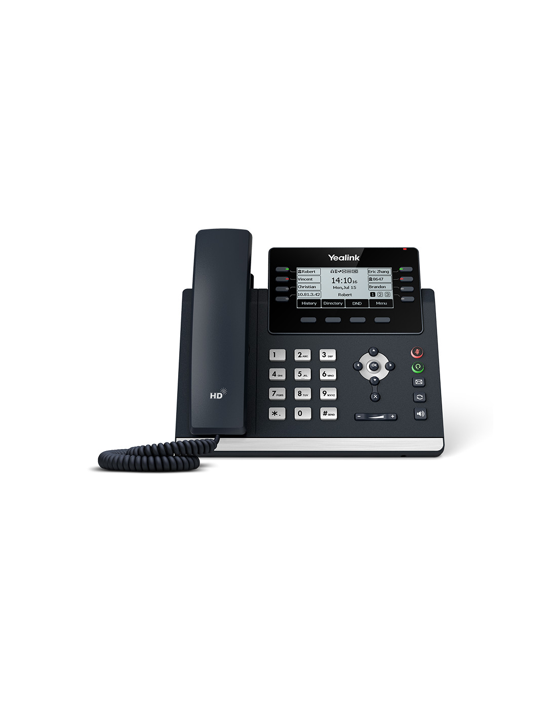 Yealink SIP-T43U. Tipo di prodotto: IP Phone, Colore del prodotto: Grigio, Tipo di apparecchio: Cornetta cablata. Modalità Dual-Tone Multi-Frequency (DTMF): In-band, Fuori banda, Info SIP. Velocità copia a colori (migliore, lettera): 12 linee, Capacità rubrica: 1000 voci. Tipologia display: LCD, Dimensioni diagonale schermo: 9,4 cm (3.7"), Risoluzione del display: 360 x 160 Pixel. Codec voce: AGC, AJB, AMR-NB, AMR-WB, G.711Mu, G.711a, G.723.1, G.726, G.729ab, OPUS, PLC, VAD, iLBC