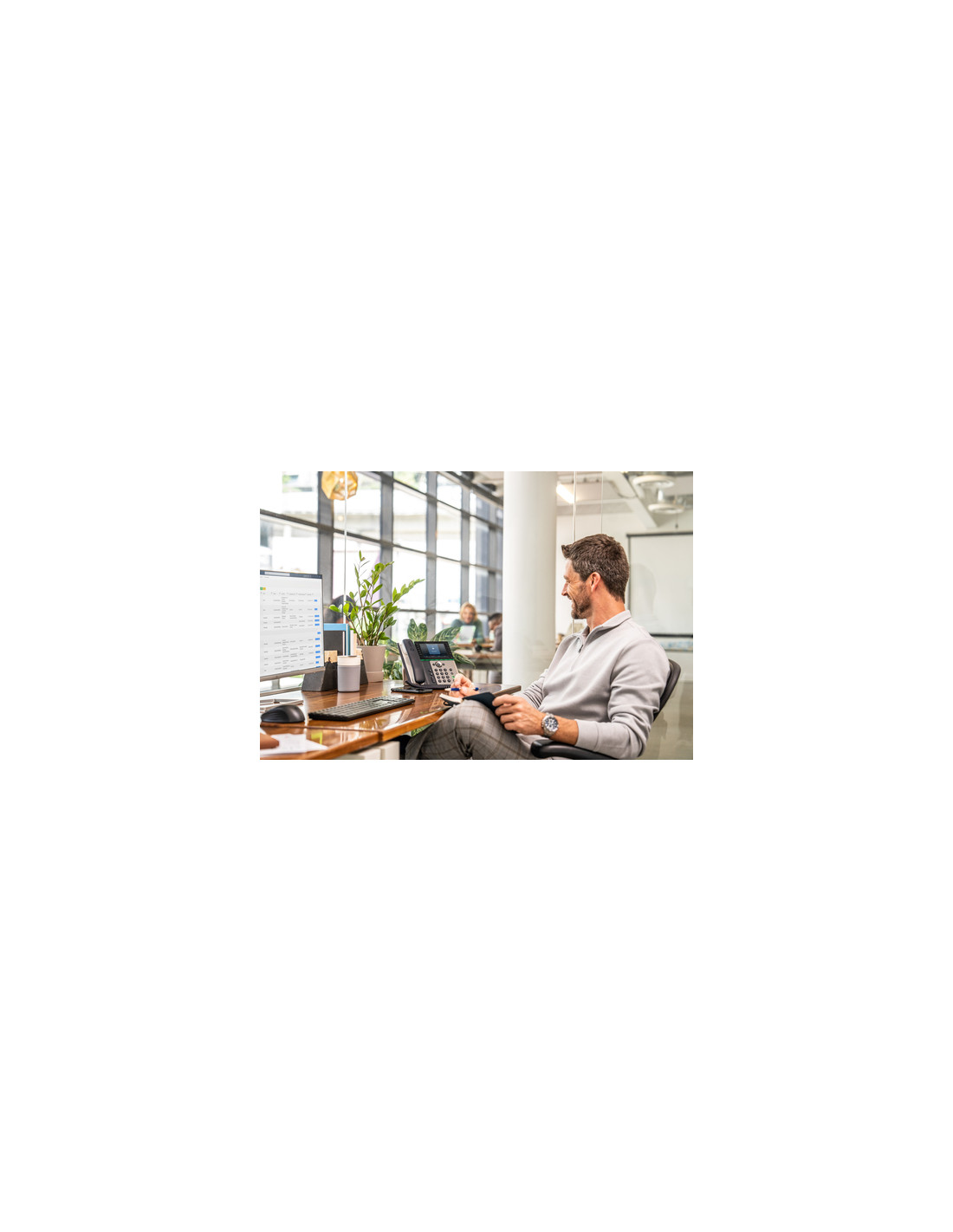 Un telefono fisso che semplifica il lavoro. Realizzati per l'hot-desking o l'home office, questi telefoni offrono una perfetta esperienza d'uso. I due display e i tasti a 12 linee assicurano più modalità di connessione, oltre a un audio di alta qualità, in un design davvero elegante.