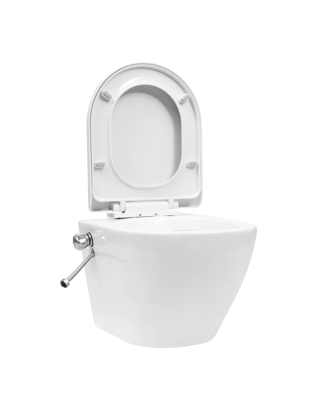 Questo WC con funzione di lavaggio senza bordo ha una superficie in ceramica particolarmente resistente e facile da pulire che semplifica la pulizia. Garantisce inoltre anni di utilizzo. Il calcare e i contaminanti non si attaccano facilmente alla superficie repellente allo sporco. Il meccanismo di chiusura ammortizzata evita la caduta del coperchio del water. Inoltre, la toilette ha un ugello per bidet per pulire i glutei e le zone intime delle donne. L'hardware di montaggio è completamente nascosto, dando un aspetto elegante e unico.